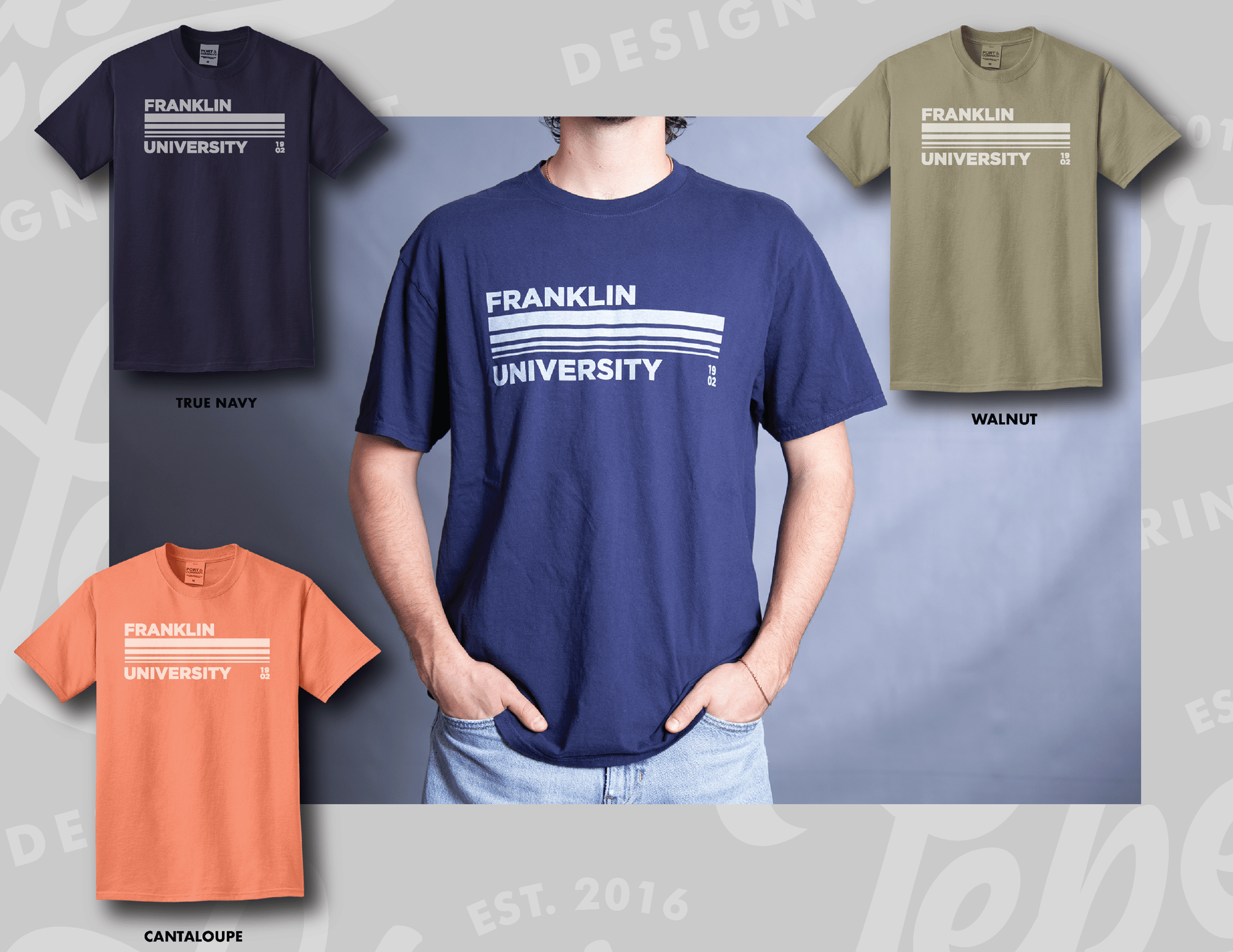 Port & Co Beach Wash Garment Dyed-tee. Colors include Cantaloupe, True Navy, Walnut